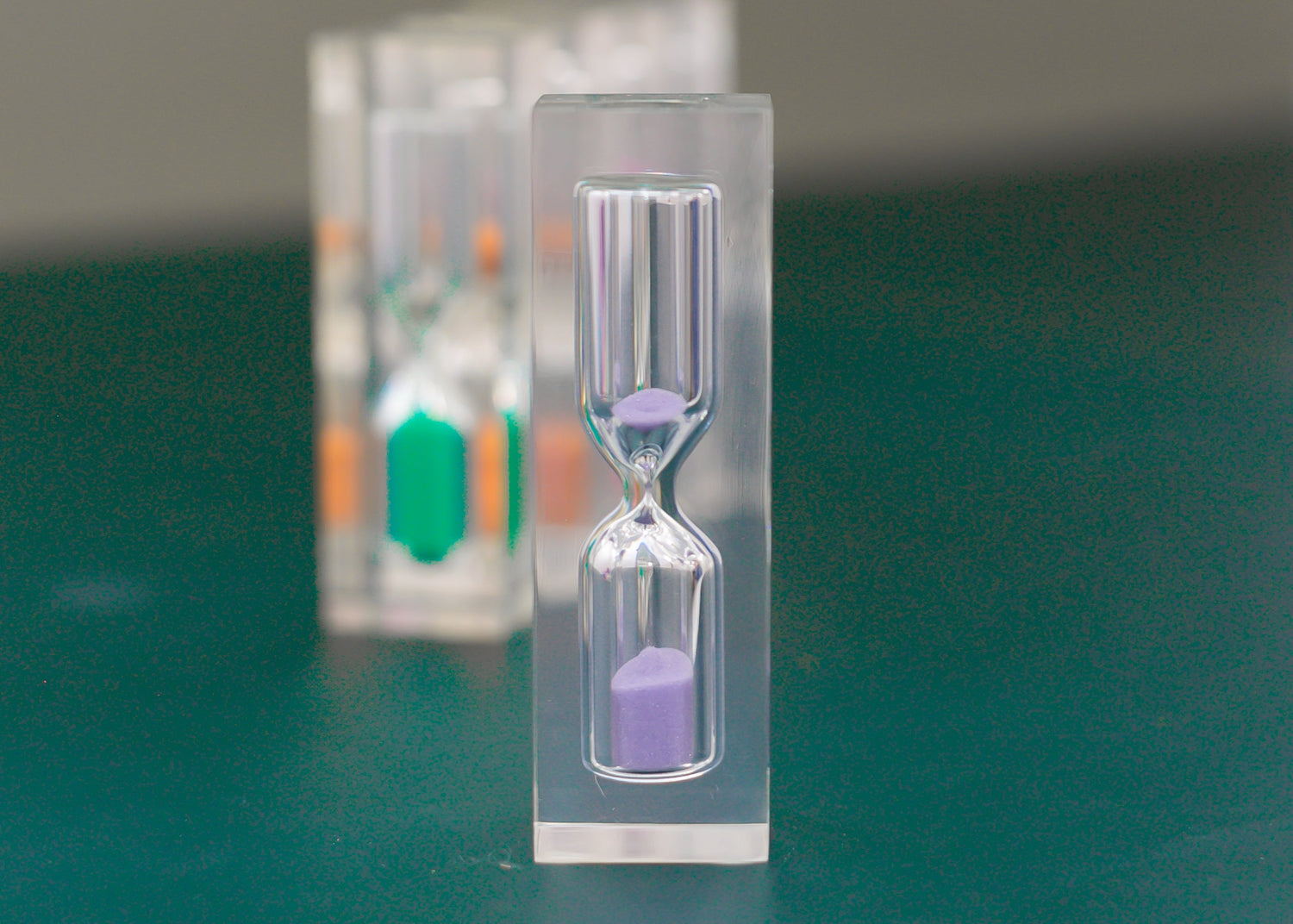 Os temporizadores são utilizados para medir a fração de um tempo. Uma ampulheta é constituída de dois compartimentos cônicos, feitos de vidro e que se comunicam entre si, no qual existe uma quantidade de areia fina que escoa de um compartimento para outro.