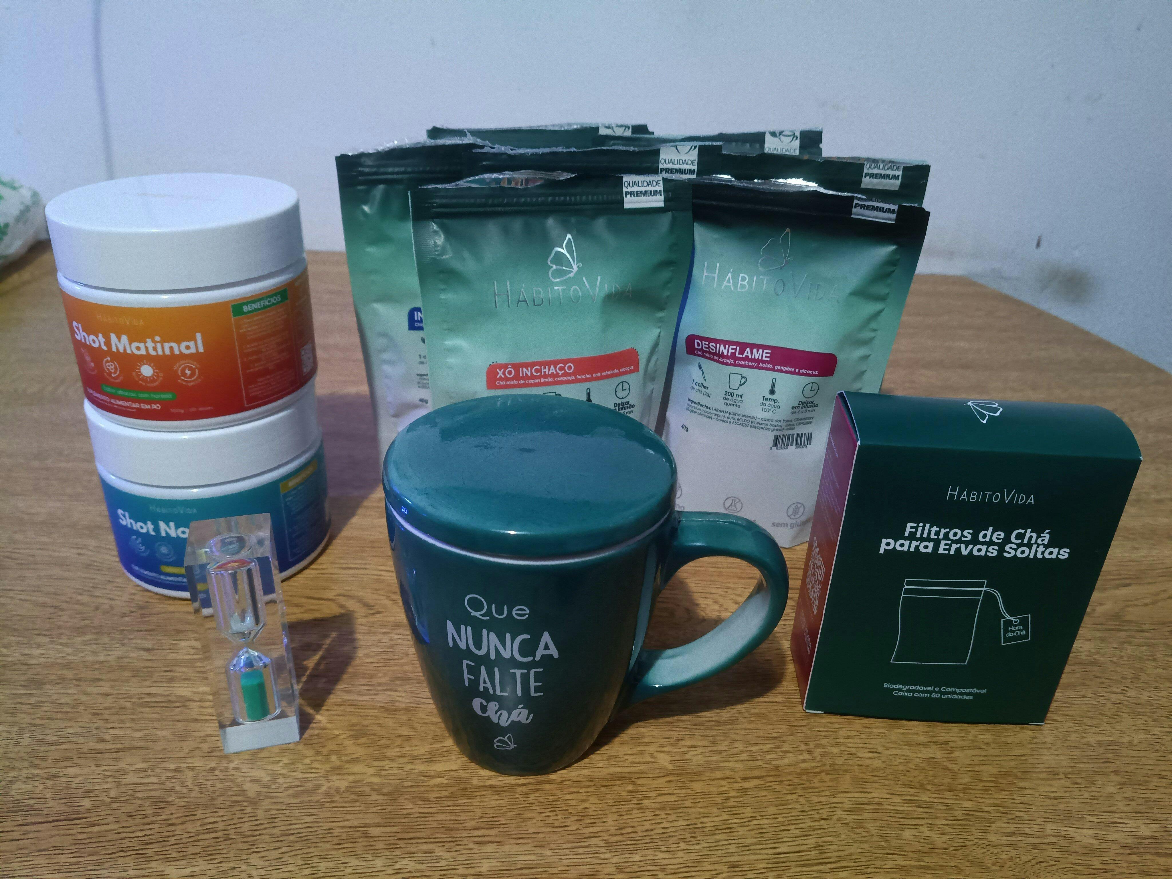 Fiz a compra chegaram muito bem embalados e perfeitos os chás são maravilhosos, estou apaixonada na minha caneca e os shots tanto o matinal e o noturno são maravilhosos