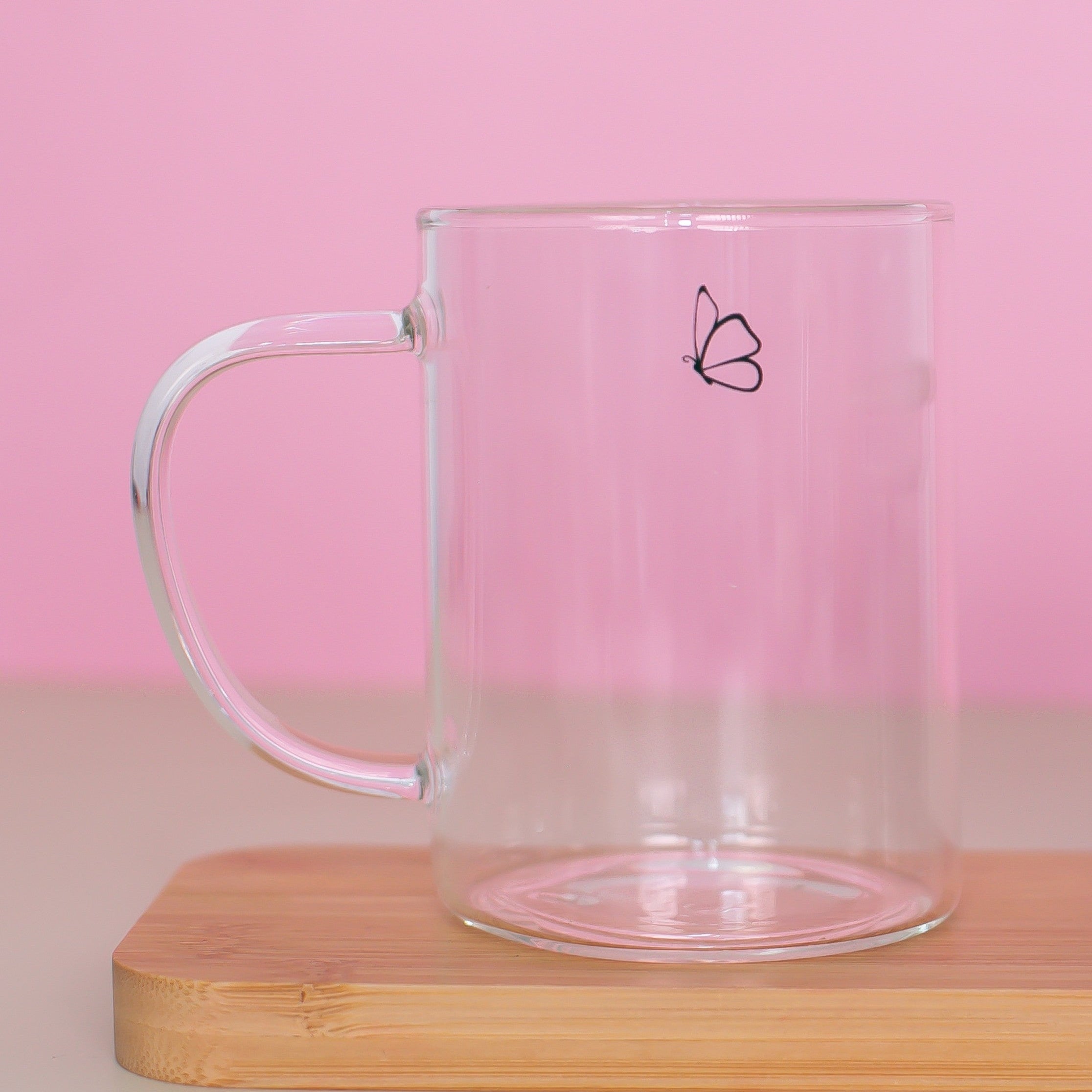 Caneca de Vidro Hábito Vida - Ilustrada com Borboleta
