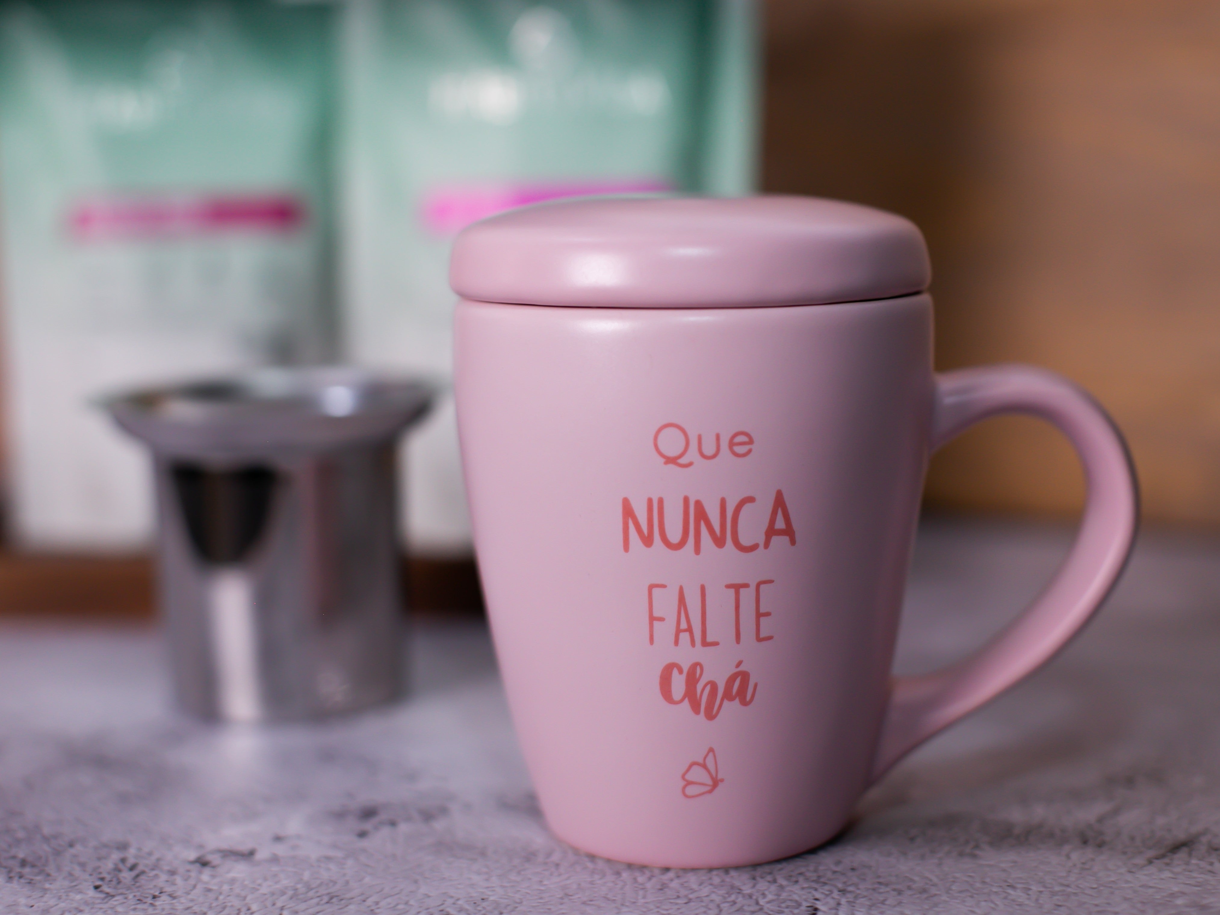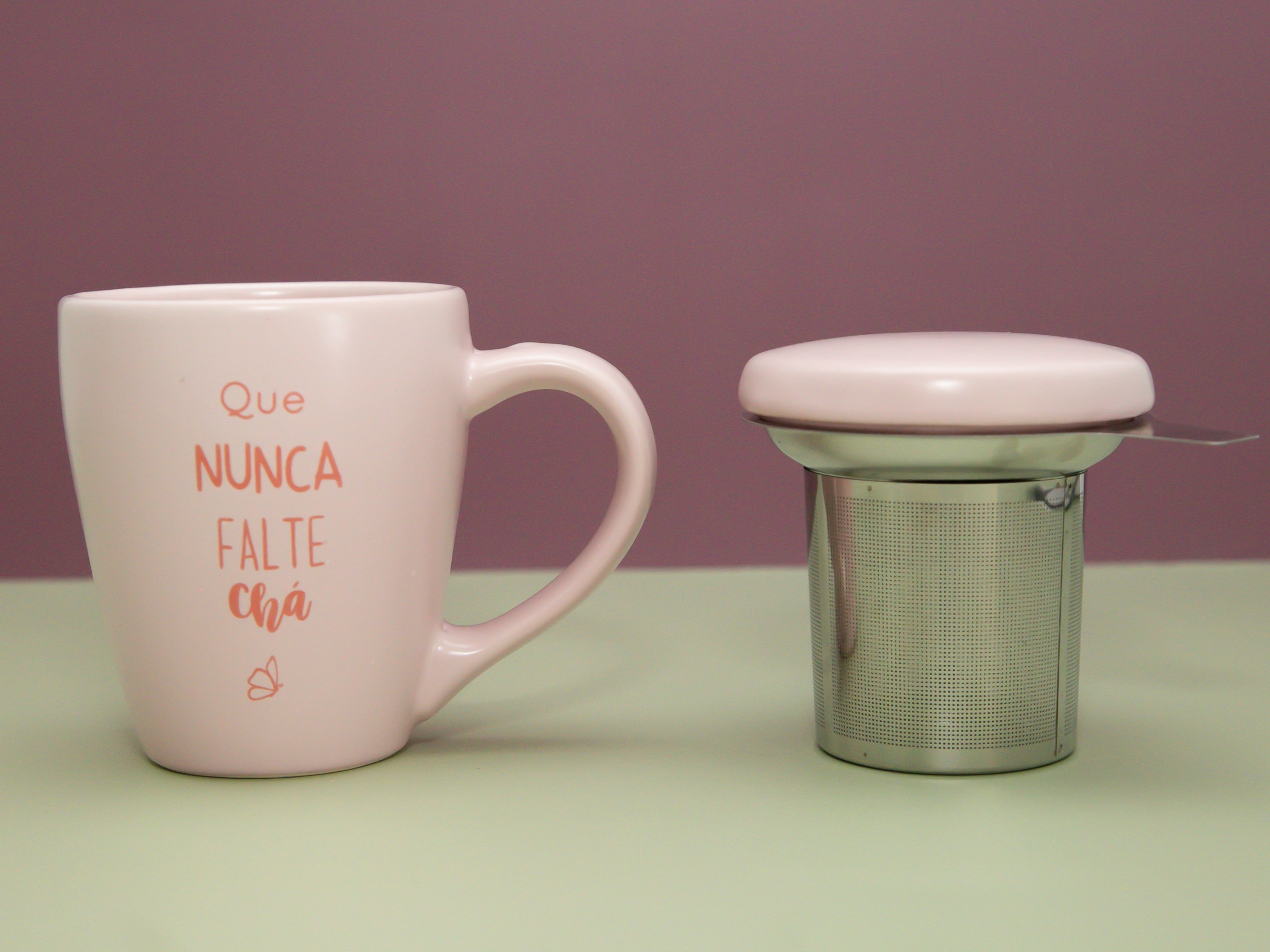 Kit Caneca Candy Rosa com Filtro Infusor de Chá oferece a praticidade ideal para preparar seus blends de chás. A tampa da caneca preservar todas as propriedades das ervas, garantindo uma infusão perfeita. Para mais informações na descrição: