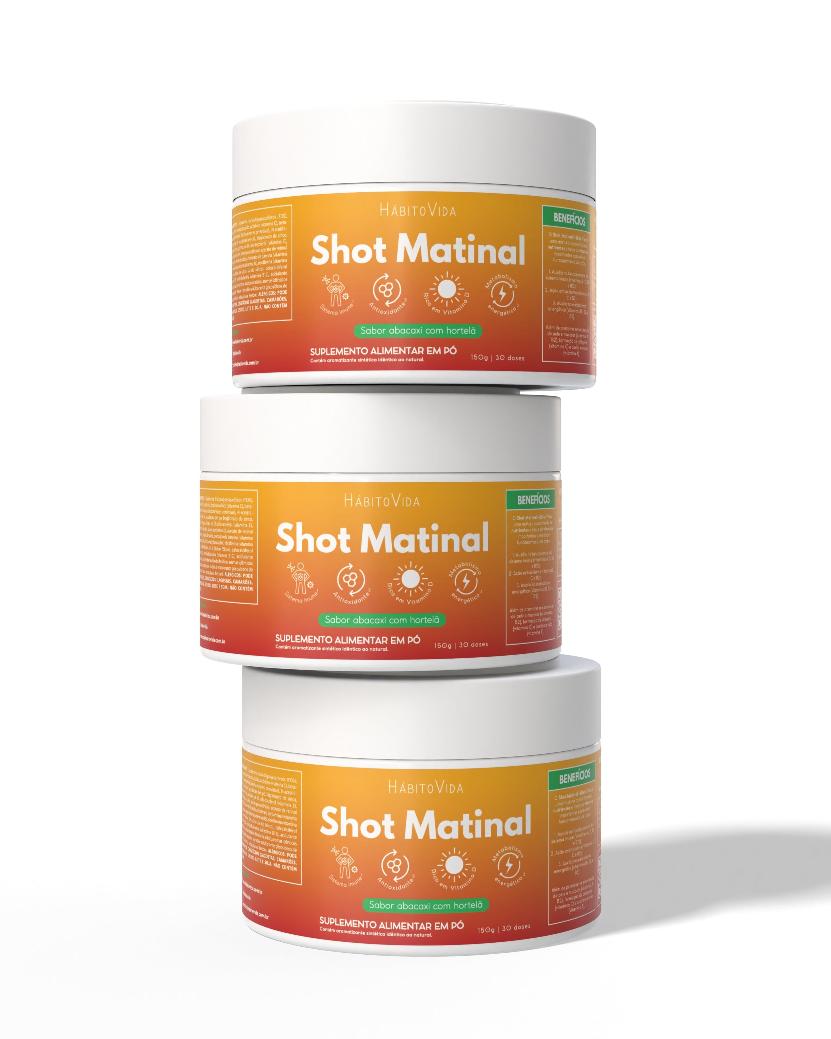 O Shot Matinal da Hábito Vida é um suplemento alimentar rico em antioxidantes, aminoácidos, vitaminas e minerais de alta absorção. Além de ter um preparo rápido e fácil por ser solúvel em água.