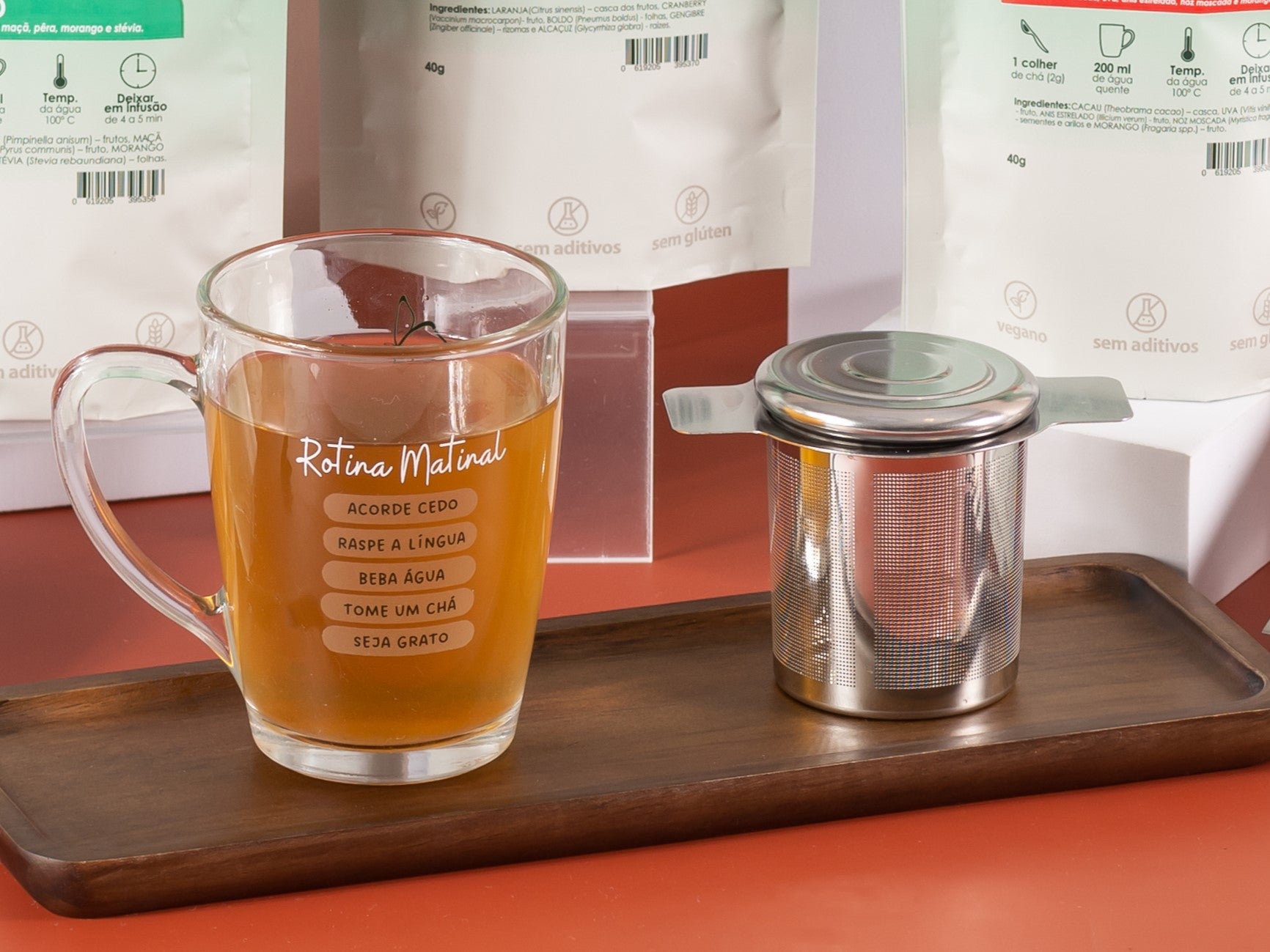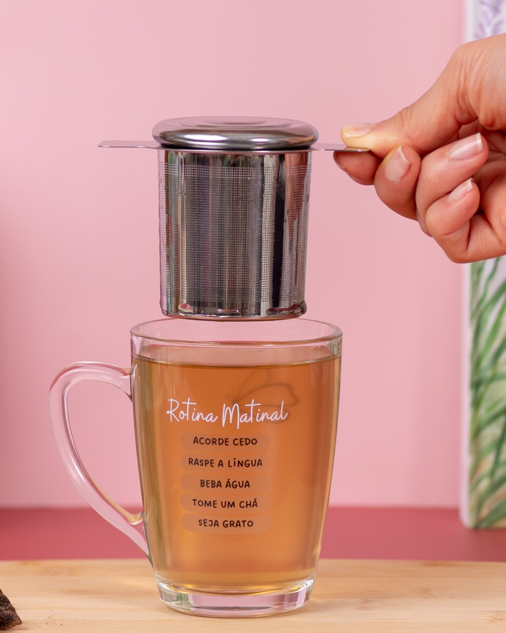 A Caneca Rotina Matinal com o passo a passo + Infusor de Chá são os acessórios perfeitos para quem deseja começar o dia com estilo. Desenvolvido especialmente para integrar-se à sua rotina matinal, esse kit combina funcionalidade e praticidade, proporcionando uma experiência completa na hora de preparar o seu blend de chá favorito, tornando cada manhã mais especial.