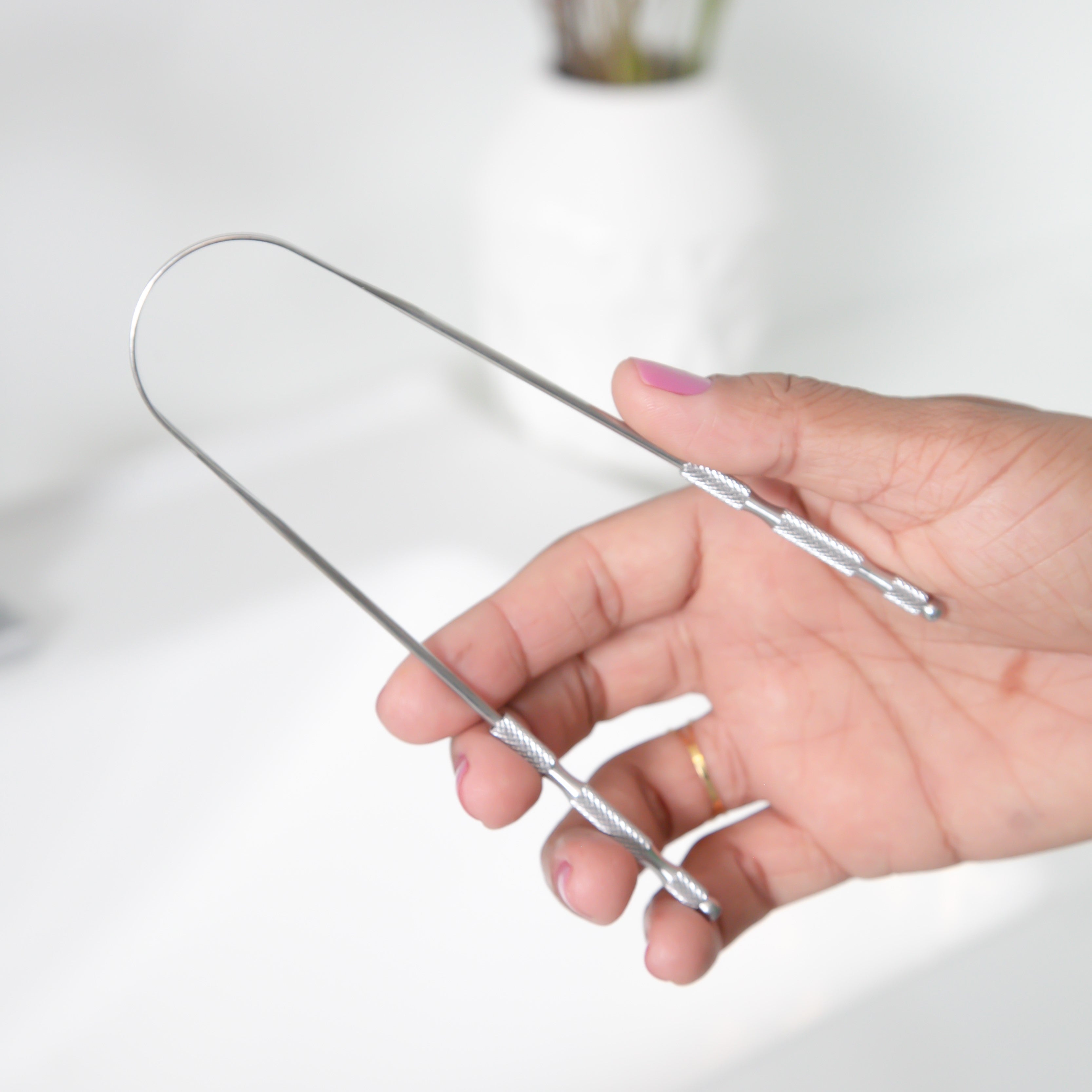 O raspador de língua inox é perfeito para o meu ritual de limpeza, ergonômico e fácil de higienizar.